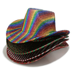 คุณภาพสูงหมวกคาวบอยตะวันตกแวววาวหมวกปีกกว้างประดับเพชรโซ่หมวกปาร์ตี้ฮาโลวีน