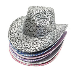 หมวกคาวบอยตะวันตกแฟชั่นวินเทจหมวกเฟโดร่าสำหรับปาร์ตี้ฮาโลวีนเลเซอร์หลากสีใส่ได้ทั้งชายและหญิง