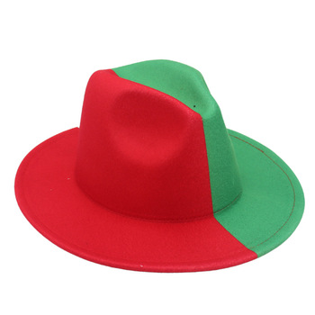 หมวกคริสมาสต์ทรง Fedora สีเขียวสีแดงคลาสสิกสำหรับฤดูใบไม้ร่วงฤดูหนาวตกแต่งเทศกาลแจ๊สสำหรับทุกเพศ